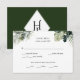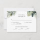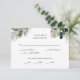 This RSVP card features lush green tropical leaves, perfect for a destination or botanical wedding. Customize with response options and meal preferences for an elegant addition to your wedding suite.