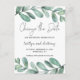 You may need to change your wedding date due to unforeseen circumstances, don't worry, we've got you covered with these trendy and very stylish "change the date" postcards. The design features hand drawn watercolor eucalyptus with modern script fonts and easy to personalize template wording.