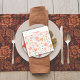 Personalized napkins adorned with a delicate watercolor design showcasing a variety of botanical flowers in soft shades of pink, vibrant orange, and pure white. These custom napkins offer an elegant touch, featuring a beautiful floral pattern painted in a watercolor style with botanical elements. The color palette includes gentle pinks, lively oranges, and pristine whites, creating a visually appealing and sophisticated aesthetic.