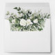 This enchanting wedding envelope set features an interior floral design brimming with white roses and a lush assortment of greenery, from soft willow to a rich jade, creating an alluring frame for the invitation within. The exterior is the epitome of elegance with a simple, refined return address printed in a classic typeface. This envelope set promises a captivating first impression, inviting recipients to a wedding event that balances the beauty of nature with the sophistication of a carefully curated aesthetic.