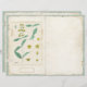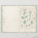 Vintage junk journal page with yellow botanical wildflower illustration on the front and white wildflower illustration on the back. Teal paisley background and parchment pages with gold labels, tape and stitching details in the center. Fold in half to make journal pages.