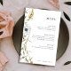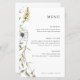 These whimsical wedding menus feature a side border of illustrated, colorful yellow, orange, and white wildflowers and green leaves on a white background. A simple design that is both boho and elegant.