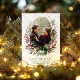 Featuring a delicate gold geometric frame encircling a lush watercolor wreath adorned with vibrant red berries, and greenery, this design combines seasonal charm with timeless elegance, making it ideal for Christmas themed weddings.