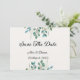 Elegant Save the Date Wedding Card with Beautiful Green Leaves.