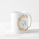 This mug can be personalized with a monogram initial and features a pretty floral botanical wreath.