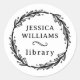 Botanical Wreath Personal Library Name Bookplate Sticker. Featuring elegant typography displaying your name in classy serif typography, framed by a hand-drawn botanical wreath and a chic text divider between your name and "library".