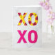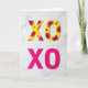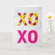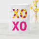 This card shows two rows of big “XOXO” letters placed on a white marble background with soft gray veins. The top “XOXO” is bright yellow and covered in a flower pattern, with magenta petals and small golden blooms scattered across each letter. Those flowers make the letters feel sweet and caring, like a little bouquet turned into a message. Below it, a second “XOXO” appears in solid fuchsia, with smooth letter shapes that look strong and direct. Both rows cast light shadows, so the letters seem to sit up off the surface a bit. The “XOXO” text is centered on the front, and the lettering looks like simple, thick print in yellow and fuchsia. It feels meaningful to give because it balances softness and confidence, making it right for romance or close friendship 🥰❤️.