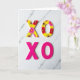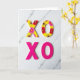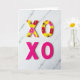 This design shows the letters “XOXO” arranged in two rows on a white marble background with light gray veins. The top “X” and “O” are bright yellow and covered with small flowers that look like daisies in pink, red, and touches of yellow. The flowers make the top row feel like a cheerful little kiss, and the colors look happy and sweet. The bottom “X” and “O” are solid hot pink, smooth and simple, which helps the whole design feel balanced. Soft lighting creates gentle shadows under each letter, so they look raised off the marble surface. The only text is “XOXO,” and it appears as thick, 3D-style letters centered on the card rather than printed in a thin font. It feels meaningful because it says a lot with just four letters—hugs and kisses that work for romance or close friendship 🥰❤️.