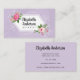 Botanist business card with a watercolor floral design and customizable text and purple background. Flower images used are graciously given by freepik.
