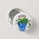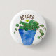 A botanical love button decorated with gotu kola planted in a royal blue clay pot sketched with ink and watercolor with a chartreuse green heart. A fun gift for anyone who studies botany, plants, and herbs!