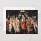 Botticelli Primavera postcard. Oil painting on panel from 1482. Sandro Botticelli was one of the great artist of the early Renaissance famous for his lush figures and vibrant use of color. Primavera is one of his most famous and beloved paintings featuring the embodiment of spring surrounded by nymphs, cherubs and the specter of winter. A pretty gift for fans of Sandro Botticelli, Early Renaissance Art, and Spring Paintings.