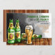 A hand-drawn, watercolor invitation featuring bottles of beer and a frothy glass of beer on a wooden surface. Perfect for bachelor parties, retirement celebrations, birthday parties and more. (<a href='http://www.freepik.com/free-vector/watercolor-beer-banners_911217.htm'>Designed by Freepik</a>). <br/><br/>The card is easy to customize with your wording, font, font color, paper shape options and choice of six paper types.<br/><br/>Not exactly what you're looking for? All our products can be custom designed to meet your needs at no extra charge.<br/><br/>Simply contact us at heartfelthelper@gmail.com.<br/><br/>Coordinating products available: Just ask us!