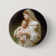 Bouguereau Innocence button. Oil painting on canvas from 1883. William-Adolphe Bougueeau was a French traditionalist painter and neo-classicist who often drew on mythological, biblical, and literary themes. His work Innocence features a beautiful young woman holding a baby and a lamb. The woman has light brown hair and wears a white gown and cream-colored shawl. A sweet and gentle look marks her countenance as the baby falls asleep. A pretty gift for fans of Bouguereau, neoclassicism, allegorical painting, lambs, and babies.