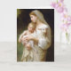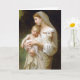 Bouguereau Innocence greeting card. Oil painting on canvas from 1883. William-Adolphe Bougueeau was a French traditionalist painter and neo-classicist who often drew on mythological, biblical, and literary themes. His work Innocence features a beautiful young woman holding a baby and a lamb. The woman has light brown hair and wears a white gown and cream-colored shawl. A sweet and gentle look marks her countenance as the baby falls asleep. A pretty gift for fans of Bouguereau, neoclassicism, allegorical painting, lambs, and babies.