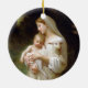 Bouguereau Innocence ornament. Oil painting on canvas from 1883. William-Adolphe Bougueeau was a French traditionalist painter and neo-classicist who often drew on mythological, biblical, and literary themes. His work Innocence features a beautiful young woman holding a baby and a lamb. The woman has light brown hair and wears a white gown and cream-colored shawl. A sweet and gentle look marks her countenance as the baby falls asleep. A pretty gift for fans of Bouguereau, neoclassicism, allegorical painting, lambs, and babies.