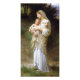 Bouguereau Innocence print. Oil painting on canvas from 1883. William-Adolphe Bougueeau was a French traditionalist painter and neo-classicist who often drew on mythological, biblical, and literary themes. His work Innocence features a beautiful young woman holding a baby and a lamb. The woman has light brown hair and wears a white gown and cream-colored shawl. A sweet and gentle look marks her countenance as the baby falls asleep. A pretty gift for fans of Bouguereau, neoclassicism, allegorical painting, lambs, and babies.