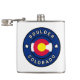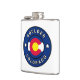 Well made flask, a little better than I had expected. Flask came in clear plastic box which gave it a nice presentation when I took it out of the zazzle packaging. Image is not printed on flask but on sticker. Don't know how this will hold up I haven't used it yet. This would make a Great gift! I plan to purchase more for friends! Cheers. I thought a little brighter than computer. Very crisp, writing wasn't