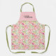 Bouquet of pink roses, green leaves floral pattern all-over print Apron. On the upper there a band of solid blush pink color with green border and name.