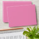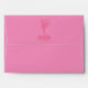Pink envelope with red inside. Back flap features red illustration of bouquet and return address.