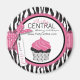 Sweet cupcake design with zebra print and hot pink accents.