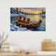 Bouvier des Flandres Christmas Boat Holiday Poster