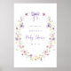 Our baby shower poster features a lavender watercolor bow and wildflower wreath - a stunning way to welcome guests at your baby shower or event.