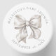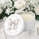 This elegant and charming party favor candle features a soft watercolor white bow, adding a clean and sophisticated touch. The design includes space for a name and event title at the top, with the date at the bottom, making it perfect for bridal showers, baby showers, or any special occasion.