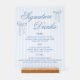 Elevate your signature drinks display with this signature cocktail sign, designed for a blue wedding. This drink menu design features a chic bow detail, perfect for a light blue wedding theme or a dusty blue wedding. Ideal for an east coast wedding, this elegant signature drinks wedding sign complements a french blue wedding, baby blue weddings, or a green and blue wedding. A stylish signature drink sign for a something blue wedding or something blue bridal shower ideas!
