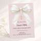 Bow dusty blush pink ivory pearls First Communion Invitation