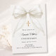 Celebrate your daughter's milestone with this elegant Confirmation invitation. This design features a stunning, oversized ivory silk bow adorned with delicate pearl strands and a central ornate gold cross. It is the perfect choice for a traditional Catholic ceremony or a sophisticated religious celebration for a young girl.