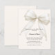 A soft ivory background, decorated with a large white bow with pearls. Elegant and gender neutral. Personalize and add a name and party details.