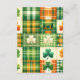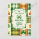 Design: Features a whimsical watercolor shamrock and gold horseshoe illustration, complemented by a green-and-gold color scheme.