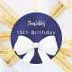 Bow navy blue white Birthday Classic Round Sticker