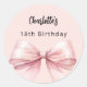 A blush pink colored background. Decorated with a large bow. Personalize and add a name. Black handwritten style script.