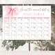 Chic Bow Pink Coquette baby shower "Guess the Due Date" calendar, featuring delicate pink bows and elegant details. Perfect activity for guests to predict the baby’s arrival while adding a personalized and stylish touch to your celebration décor.