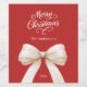 A red background and cream, beige colored text and bow. Merry Christmas is written with an elegant hand-lettered style script. Personalize and add your family name and year.