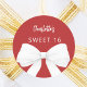 A red colored background. Decorated with a large white bow. Personalize and add a name. White handwritten style script.