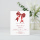 A white background, decorated with a large red bow. Personalize and add a name and party details.