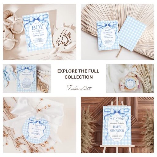 Yes! Our Independent Creators have worked hard to create many products as collections or in coordinating styles and new designs are added daily to many different products. Some popular supplies that match Bow Ribbon Blue Gingham Baby Boy Shower Invitation include napkins and posters that are among our best sellers but we also have many more products you can look at.