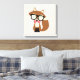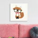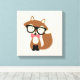 Beautiful canvas design features a cute illustration of a sweet little brown fox wearing an oversized pair of reading glasses and a pink bow tie, and can be personalized with a name or a custom message and be used as the perfect finishing touch for a baby nursery, children's bedroom, kids playroom, classroom, dorm room, etc.