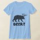 My overall review is that the T-shirt is nice, it fits true to size however the font is significantly smaller than advertised and you can't read it. The printing is unreadable and there is a strain to read it. It does not look like the advertised product. Maybe the shirt color is darker or a larger more visible font should have been used. Photos with and without flash and font is barely legible.
