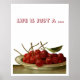 Brighten up your dining space, kitchen, break room or office with this poster of a silver bowl full of bright red cherries. I recolored a vintage image and changed the background color to a light blue gray. I added the text "Life is just a ..." but you can change that if you want.