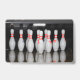 A name badge featuring a rack of bowling pins. Great idea for bowling alley staff members.