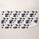 Bowling ball and pins black red custom bathroom towel set design featuring a minimalist icon of three black bowling pins with red stripes and a ball. The hand towel includes a striped pattern in red, black and white and the washcloth is of solid red color.