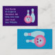 This retro bowling illustration features a pink, purple and blue bowling ball with fun circles on it in front of two bright blue pins with pink stripes! The vintage inspired art on these business cards is kitschy, original and would be great for a bowler or anyone who loves bowling and retro art!