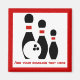 Bowling ball and pins custom magnet that features a minimalist icon of three black bowling pins with red stripes, a ball and your text on white background with red border. Personalize it and change text with monogram, name or your message. The perfect gift ideas for the fanatic bowler and the bowling lover.