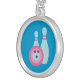 Bowling Ball and Pins Silver Plated Necklace