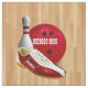 Bowling Ball Shoe And Pin With Your Custom Name in red and white colors on wooden bowling alley floor. You can personalize it with your own name, team or your bowling name club