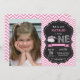Bowling Birthday Invitation with custom photo. 1st Birthday Party. Girl Birthday Party Invite. Bowling Sport Themed Birthday Bash. Pink and White Chevron Chalkboard Background. 1st First Birthday. Printable Digital. For further customization, please click the "Customize it" button and use our design tool to modify this template.