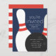 A modern, gender neutral birthday party invitation featuring bowling ball and 2 bowling pins. Invite friends to celebrate and play a fun game of bowling to celebrate your child's birthday. Coordinating pattern backer can be removed to make room for additional party information like directions.